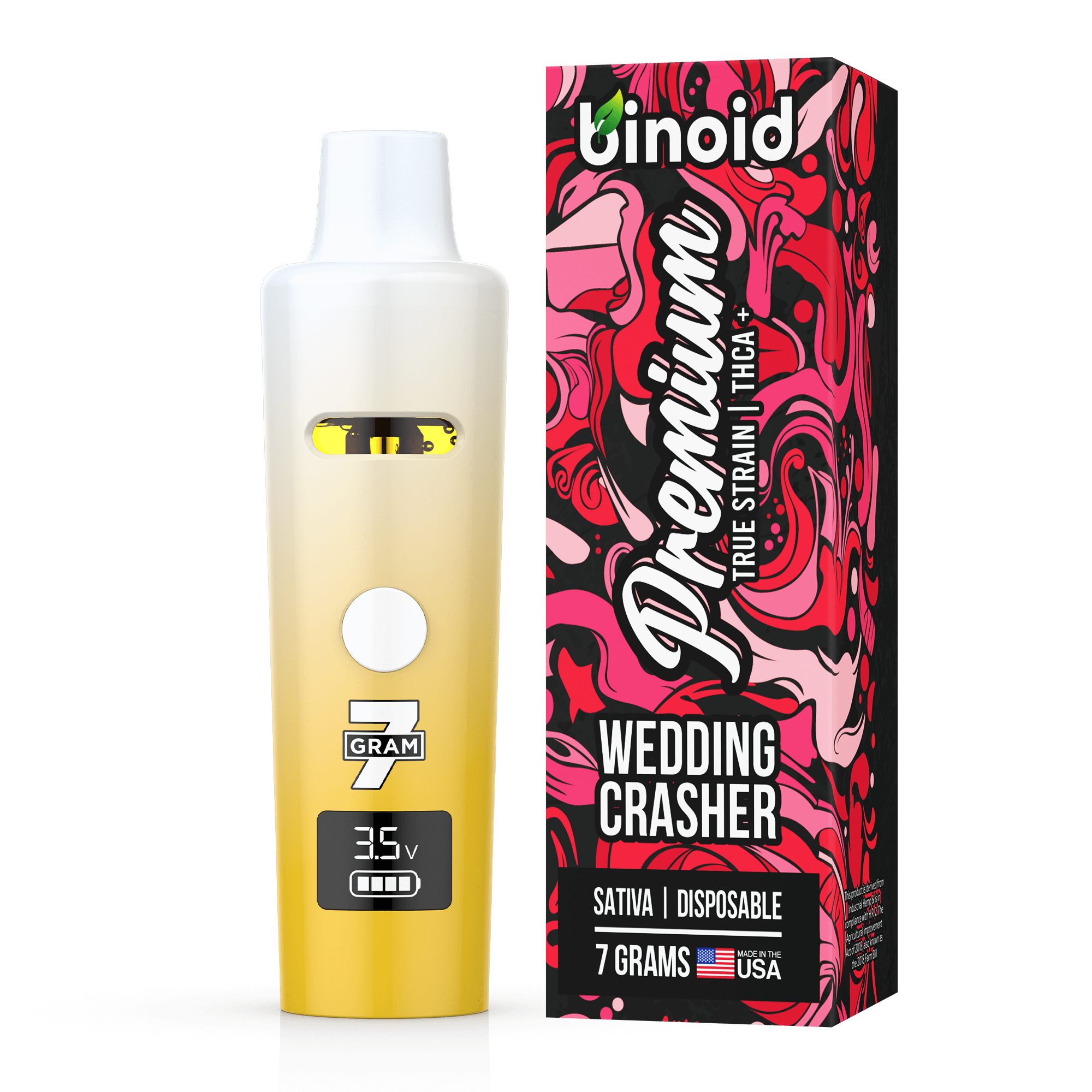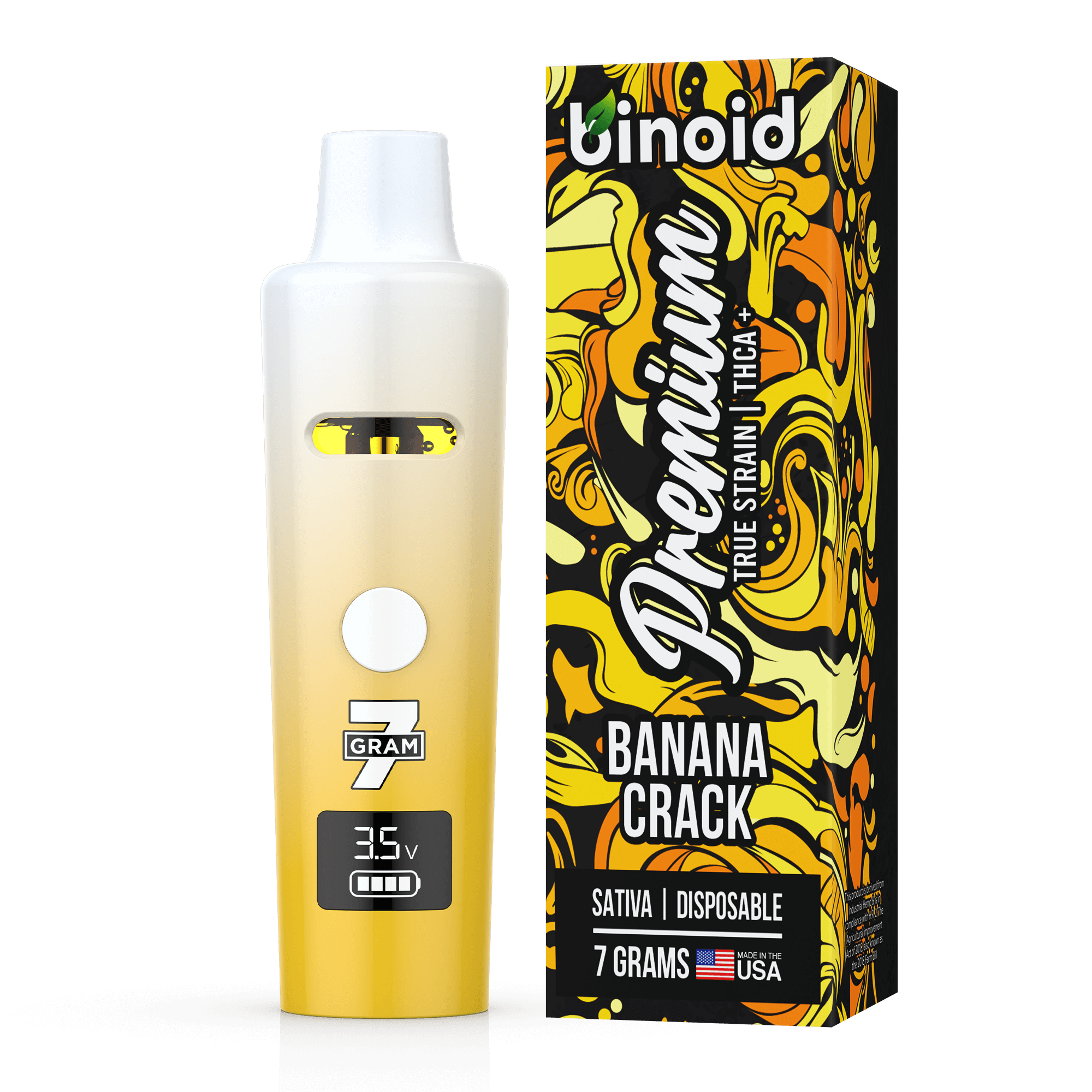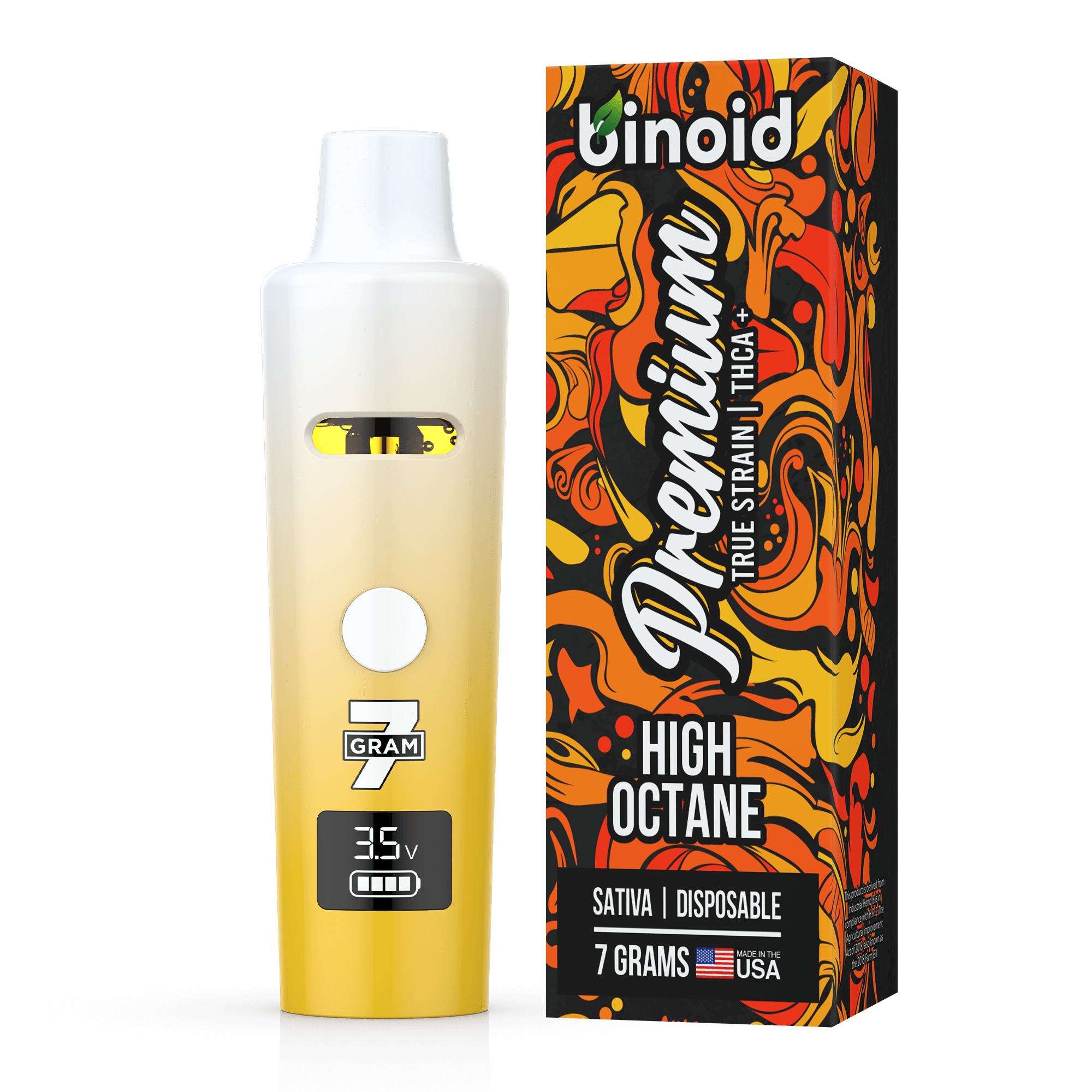 What are the strongest 7 gram THCA disposable vapes?Binoid’s 7 gram THCA disposables are the strongest and largest THCA disposables available. These disposables provide maximum potency with a powerful combination of live resin THCA, Delta 9P, and strain-specific terpenes. Designed with USB-C charging and advanced technology to prevent clogging, these disposables offer an extended and intense vaping experience.