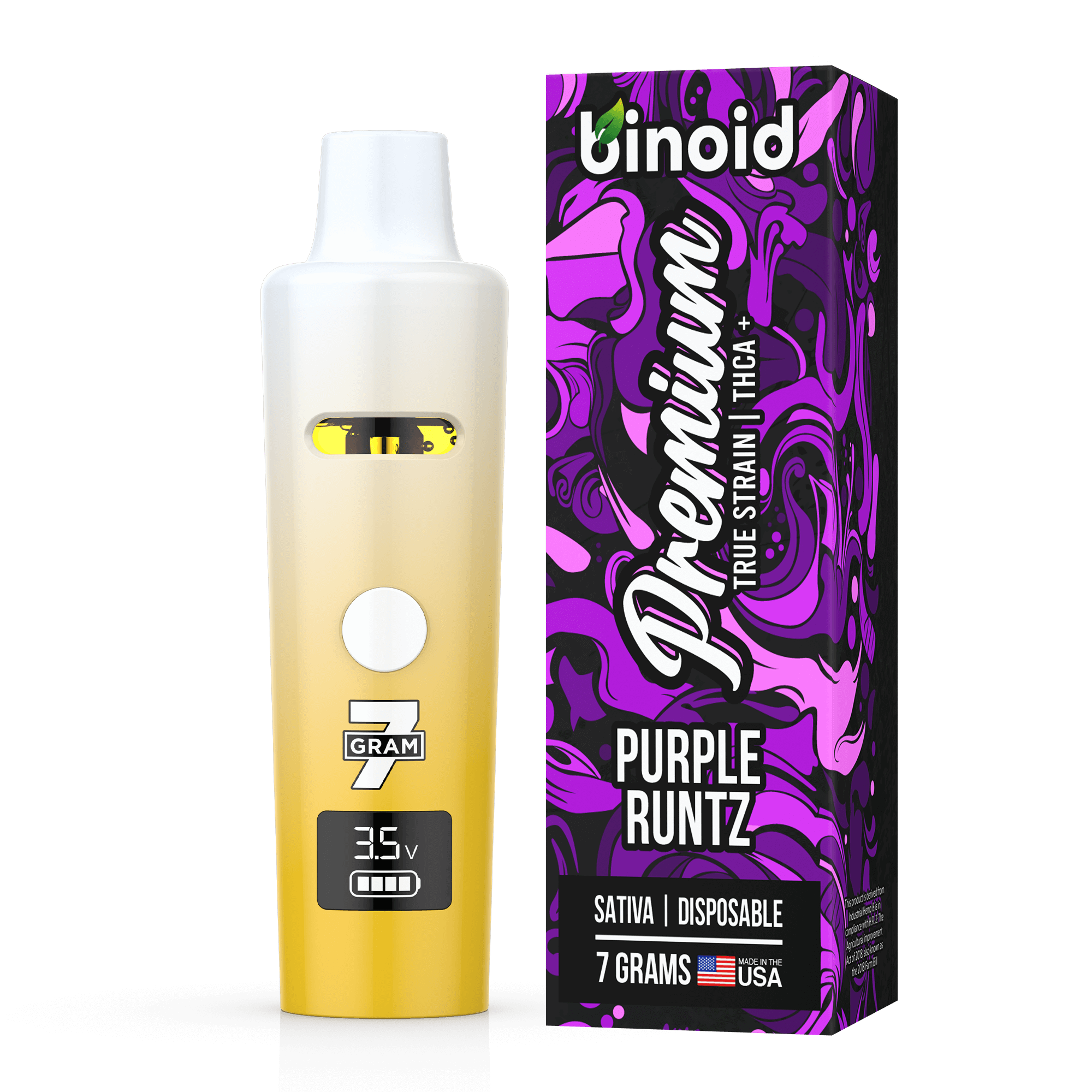 Binoid is the best place to buy true strain disposables online, with premium distillate in each vape. Binoid has thousands of website reviews, and some of the highest rated THCA and cannabinoids online. The Binoid 7 Gram True Srain Series has an unbeatable uplifting feel. Binoid’s 7G rechargeable is derived from hemp and federally legal. We infused our live resin disposable with real cannabis terpenes to allow for amazing Sativa, Indica, and Hybrid effects.
